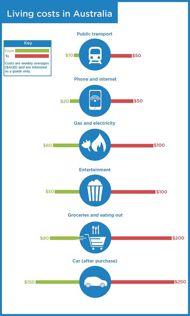 生活費用: 瞭解澳洲的平均生活成本是做好資金準備的重要工作。我們特地編寫了這份一般費用清單以供參考。